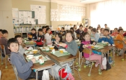 谷根川に帰ってきたサケを使った給食を味わう子どもたち=鯨波小 (2008/01/22)