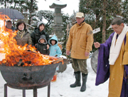 傷んだばちを燃やし、復興を決意する日本海太鼓のメンバーら (2008/01/28)