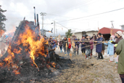 小正月の行事「さいの神」を行う安田・中道地区。燃える火に復興を託した (2008/01/15)