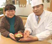 米の全国食味分析鑑定コンクールで上位に入賞した上野さん(左)と中村さん(右) (2007/12/22)