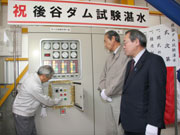後谷ダムの試験湛水開始で行われたゲート閉鎖の操作 (2007/12/28)