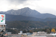 中腹からうっすらと白い雪が見える米山=19日午前 (2007/11/19)