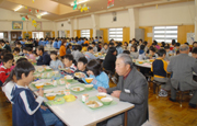 「地場産給食」で煮なますなどを「おいしい」と食べる児童たち=新道小 (2007/11/20)