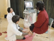 エコノミークラス症候群予防検査会で足の静脈の状態を調べるエコー検査=元気館 (2007/11/24)