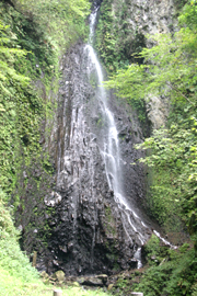 地震の影響か、水の流れが右側だけに片寄ってしまった善根の不動滝 (2007/10/06)