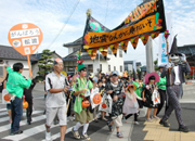 「地震なんかに負けないぞ」とユニークな仮装でパレードする復興ハロウィーン参加者 (2007/10/09)