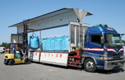 神林村で乾燥・検査を行うため、トレーラーに積み込まれるコシヒカリの生もみ (2007/09/21)