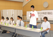 市体協の国体出場選手激励会であいさつする選手たち=市民プラザ (2007/09/22)