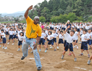 児童と一緒にエクササイズをするビリー隊長=半田小 (2007/09/27)