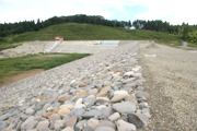 地震後の安全確認調査が進められている市内西山町の国営後谷ダム (2007/09/07)