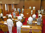 冒頭に地震犠牲者の冥福を祈り、黙とうした刈羽村議会全員協議会 (2007/08/18)