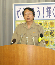 復興支援室の設置など当面の対応を記者会見で述べる会田市長=市役所大会議室 (2007/08/22)