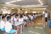ランチルームで行われた西山中の全校集会=23日 (2007/08/23)