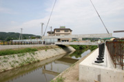 国道8号バイパスの横山川橋のけたを架ける工事 (2007/08/24)