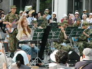 商店街の復興を祈念したコンサートで、花束を手に声援に応えるKOKIAさん (2007/08/07)