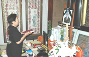 官親房さんの遺稿集「叛ニャ心経」を発刊し、仏前に供える志田テイさん (2007/08/09)