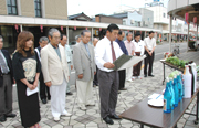 どんGALA!祭りの開催を前に、祭り本部予定地で晴天祈願の神事を行う関係者=27日、市内駅前2 (2007/06/29)