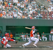 北信越BCリーグ新潟―信濃戦。新潟先制の足がかりとなった稲葉の2塁打=佐藤池球場 (2007/07/02)