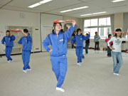 綾子舞伝承学習で練習に取り組む南中校区の児童生徒=同校 (2007/05/16)