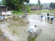 高柳で地域の人たちと一緒に苗を植える連合東京じょんのび会 (2007/05/22)