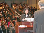 新潟産大の入学式で誓いの言葉を述べる新入生 (2007/04/04)