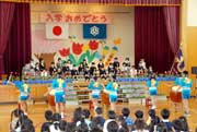 太鼓演奏で、新1年生を歓迎した大洲小の入学式=6日 (2007/04/06)