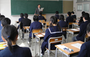 公立高入試で受験上の注意を聞く受験生=8日午前9時過ぎ、柏高 (2007/03/08)