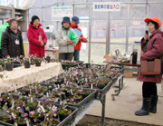 ハウスで案内の実習を行う大崎雪割草の里の認定ガイド (2007/03/12)