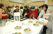 地域ブランドメニューの創造を目指し、最終検討会。約100人が参加し、試作の料理を味わった=15日、市民プラザ (2007/03/17)