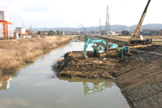 川の拡幅・掘削が進められている別山川(上原二の橋から上流を望む) (2007/03/01)