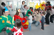 ひな祭りを迎え、各所でにぎやかにお祝い行事。趣向を凝らしたゲームに子どもたちは大喜び=2日午前、元気館 (2007/03/02)
