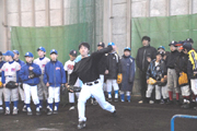 模範投球を行う元近鉄・小池さんに注目する小学生投手 (2007/03/03)