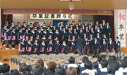 卒業証書を手に中学校最後の合唱を行う卒業生=6日、二中 (2007/03/06)