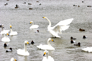 たくさんのハクチョウやカモが飛来し、冬を越す市内西山町長嶺大池=今月15日 (2007/02/22)