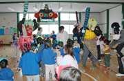 元気よく豆まきをする園児たち=2日午前、茨目保育園 (2007/02/02)