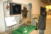 市立博物館のロビーで展示中のイノシシのはく製 (2007/02/10)