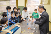 新潟工科大教授による出前授業「おもしろ理科実験」に目を輝かせる児童たち=高浜小 (2007/02/13)