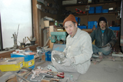 首都圏では初の個展を開く原惣右エ門さん(手前)と長男の聡さん(後ろ) (2007/01/13)
