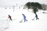 ガルルのスキー場でスノーダンプや重機でゲレンデに雪を集めるスタッフ (2007/01/17)