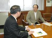 中国・上海美術館での個展を前に、会田市長を訪れた水野竜生さん=市長応接室 (2007/01/20)