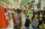 年賀状を特製ポストに入れる中央幼稚園の園児たち=柏崎郵便局 (2006/12/15)