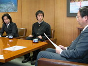 高校生ものづくりコンテスト全国4位の君島君(中央)をたたえる会田市長(右) (2006/12/19)