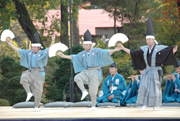 綾子舞の記念公演で約20年ぶりに復活した狂言「烏帽子(えぼし)折れ」、5日午後、市内鵜川の特設舞台 (2006/11/06)