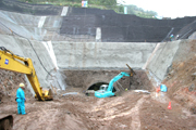 鵜川ダム建設現場の仮排水トンネルの上流側。貫通した坑道が半円状に見える (2006/10/13)