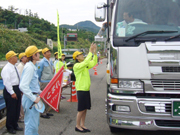 トラックに安全速度の励行を呼び掛ける県トラック協会柏崎支部=27日 (2006/09/28)