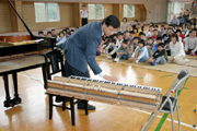 ピアニストの関孝弘さんから、ピアノの仕組みを学び、モーツァルトの曲を楽しむ子どもら=高柳町、門出小 (2006/09/29)