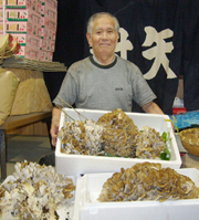 天然マイタケを大量に収穫した矢作さん (2006/10/04)