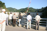 堤体の築造が最終段階に入った栃ケ原ダムを視察する河川改修2団体 (2006/10/05)