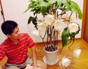 市内の村木さん宅で16個の花が一斉に咲きそろった月下美人 (2006/08/02)