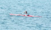 佐渡海峡をカヌーで横断した光用和寿さん=8日、石地海岸付近 (2006/08/09)